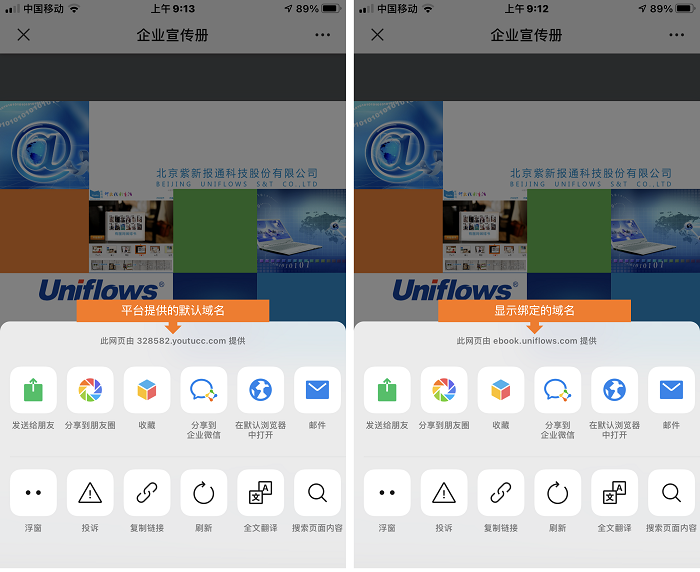 将您账户下所有作品的链接地址的有图官方提供的域名绑定为您企业官方域名,更高的个性化品牌曝光度,此项套餐购买后联系官方客服即可开通,开通后账户下所有作品链接拥有的特权。