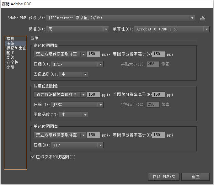 2、(可选)从“存储 Adobe PDF”对话框左边的窗格中选择“压缩”,以便指定 PDF 文件的压缩和缩减像素采样选项。